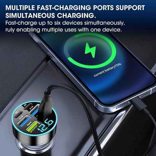 ![66W Auto Ladegerät, Zigarettenanzünder USB mit 6 Anschlüssen [2PD+2USBA 3.1A+1Super+1SCP/QC3.0] Schnellladung 12V-24V, Adapter Steckdose mit LED Voltmeter für Android/I-Phone/Samsung/Tablet/Smartphone – Bild 5](https://m.media-amazon.com/images/I/51gepU8tH0L.jpg)