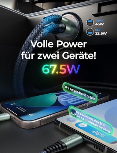 ![AINOPE 67.5W Volllast Zigarettenanzünder USB C [99% Unsichtbar], 12V USB Adapter Auto Ladegerät USB C [PD45W & QC3.0] Kfz Ladegerät für Galaxy S25 Ultra, iPhone 17 Pro Max Air, Xiaomi 15, iPad – Bild 3](https://m.media-amazon.com/images/I/41XJ+sYoFXL.jpg)