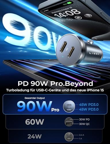 ![LISEN 90W Zigarettenanzünder USB C, [PD3.0 Superschnelles Laden] Autoladegerät Zigarettenanzünder, KFZ Ladegerät USB C, Car Charger, Cadeau Saint Valentin für iPhone 17 16 15 Pro Max iPad Galaxy S25 – Bild 4](https://m.media-amazon.com/images/I/51QX0JcIzmL.jpg)