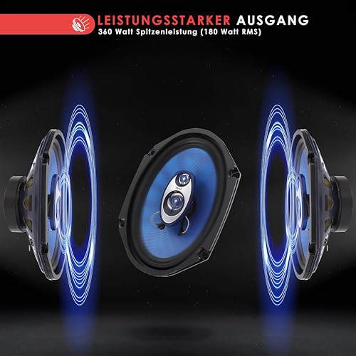 3-WEGE EINBAULAUTSPRECHER FÜR KLAREN KLANG: Die Auto Boxen 15 x 20 cm (6″ x 8″) mit blauem Poly-Injection-Kegel verbessern die Klangqualität und sorgen für verzerrungsfreien, klaren Sound in deinem Auto Lautsprecher Set.