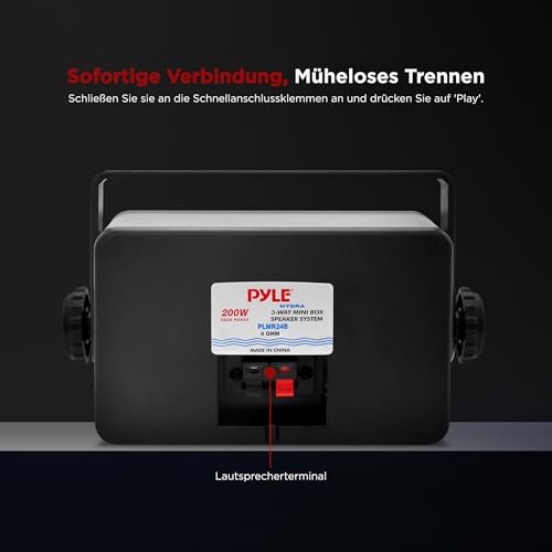 Pyle Aussenlautsprecher 3.5″ Schwarz – 200W Wandlautsprecher wetterfest für Außenbereich Marinegeeignet Indoor & Outdoor Kompakte Bauweise Ideal für Terrasse Garten Boot