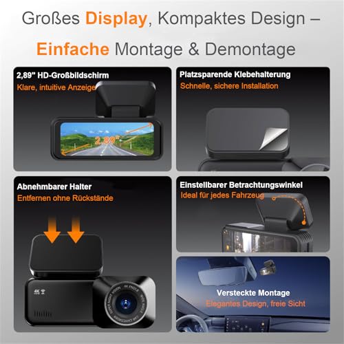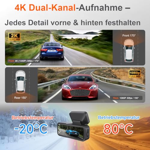 Diese Dashcam verfügt über eine beeindruckende 4K-Frontkamera und eine Full-HD-1080P-Rückkamera.