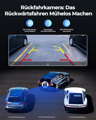 Intelligente Rückfahrunterstützung: Steigern Sie die Sicherheit beim Rückwärtsfahren mit der 4-LED-Rückfahrkamera. Die Kamera schaltet sich automatisch ein, wenn Sie in den Rückwärtsgang wechseln, und bietet klare, helle Sicht auch bei schlechten Lichtverhältnissen.