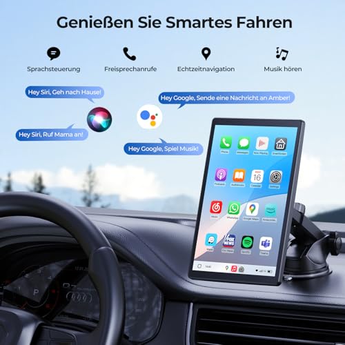 Volle Funktionalität für Apple CarPlay & Android Auto: Genießen Sie freihändige Musik, Anrufe und Textnachrichten über Sprachsteuerung. Die Navigation in Echtzeit wird von Apps wie Apple Maps, Google Maps, Waze und Here WeGo unterstützt und bietet aktuelle Verkehrsinformationen und Routenempfehlungen