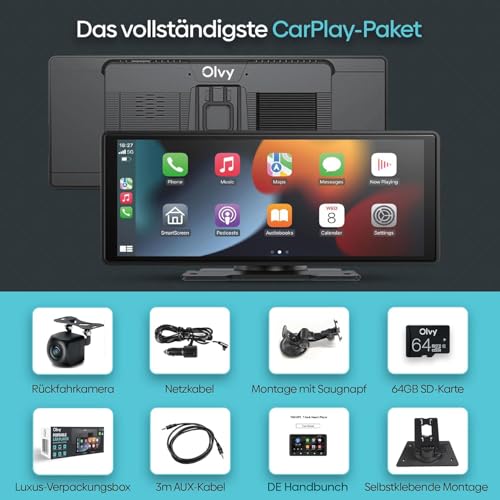 Olvy CarPlay Display – Kabellose Android Auto & CarPlay Box, 10,26 Zoll kabelloser CarPlay-Bildschirm, Multimedia-System fürs Auto, Smart CarPlay Pro, CarPlay-Monitor