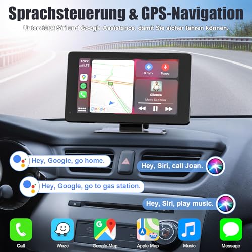 Wireless Carplay Display Android Auto Display mit Stehende Halterung 7 Zoll Touchscreen Auto Display Car Play Bildschirm mit Rückfahrkamera, Buddy Display mit Siri/Google GPS Navigation AUX, FM