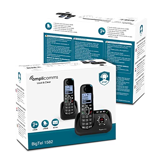 Amplicomms BigTel 1582 Duo schnurloses DECT Großtasten Telefon, Anrufbeantworter, zusätzliches Mobilteil, Audio-Boost, extra Laute Klingeltöne, Hörgerätekompatibel