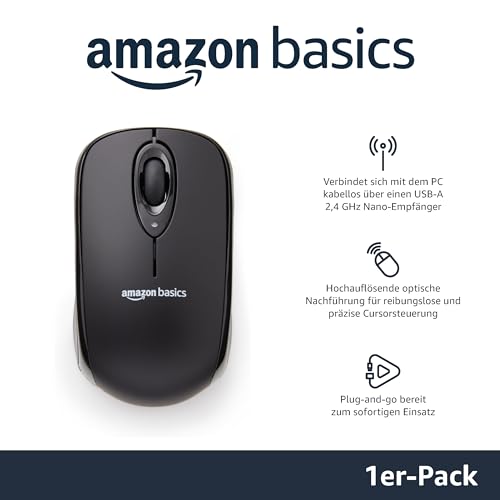 Amazon Basics Kabellose Computer-Maus mit USB-Nano-Empfänger, Schwarz