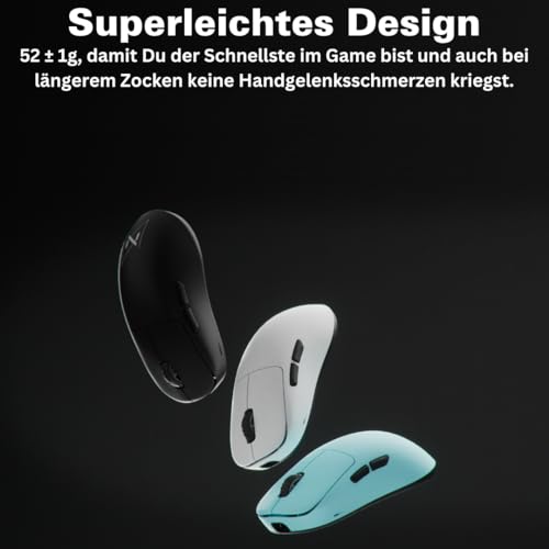 Nyfter – Premium Gaming Maus ELT Ergolight 4K Kabellos 52g Superlight Pixart PAW 3995 bis zu 26000 DPI für Ultra fastes Gameplay (Black)