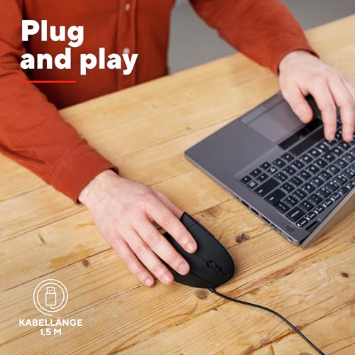 PLUG & PLAY – Einfach die Verto-Maus mit dem 1,5-m-USB-Kabel anschließen und direkt mit der Arbeit beginnen. Das blaue LED-Licht beleuchtet die Maus.