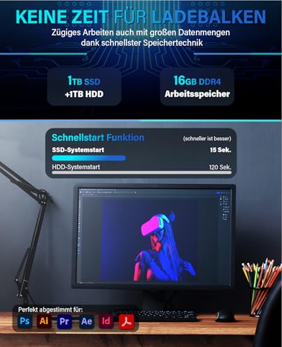 Perfekt abgestimmt für den Alltag! Unser Stand PC ist mit dem Betriebssystem Windows 11 Pro / WIN 11 Professional 64 Bit sowie einen Office Paket ausgestattet. Mit unseren eingebauten 1 TB SSD + 1000 GB HDD Festplatte / Festplatten haben Sie genügend Speicherplatz für ihre Bilder, Videos oder sonstige persönliche Daten!