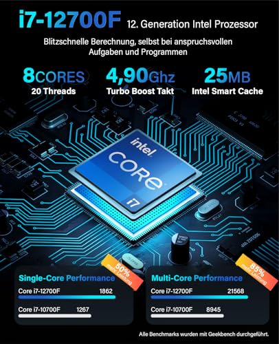 Greed® Ultra V2 PC mit Intel Core i7 12700F – Schneller Rechner – Computer für Büro & Home Office mit 4,8 GHZ – 16GB RAM/Arbeitsspeicher – 1TB SSD + 1TB HDD – DVD+RW – USB 3.1 – WLAN, inkl Win 11 Pro