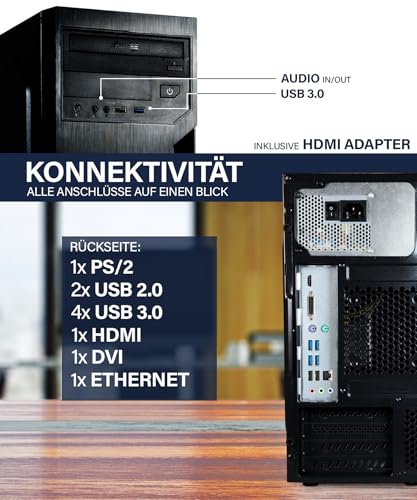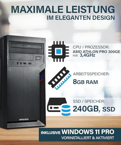 Office PC – Computer mit AMD Athlon Pro mit 3,4 GHz | 8 GB RAM DDR4 | 240 GB SSD Festplatte | Win 11 Pro | WLAN | DVD+RW | USB 3.0 | High End Office Tower-Pc