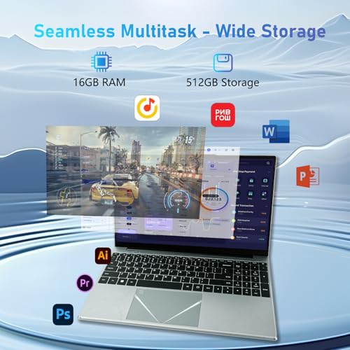 Laptop 15,6 Zoll, AMD Ryzen 5 16 GB RAM 512 GB SSD(i5 übertroffen) 3,7 GHz, 5000mAh Große Akkulaufzeit 180° Bildschirm, Notebook für Studenten und Arbeit Touch ID Typ-C WiFi5 BT