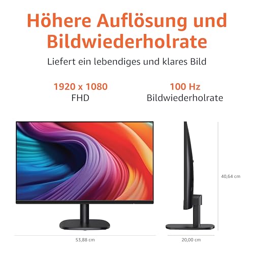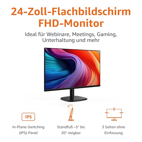Amazon Basics Monitor 24 Zoll (61 cm), FHD 1080p, max. 100 Hz, VESA-kompatibel, integrierte Lautsprecher, Schwarz