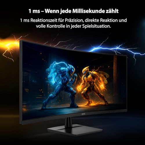 ODYS XE34-UWQ-120 Curved Gaming Monitor – 34 Zoll (86 cm) UWQHD (3440×1440), 120 Hz, 1ms (MPRT), 21:9, VA-Panel, HDR10, Adaptive Sync, 122% sRGB, 1500R Krümmung, HDMI 2.1, DisplayPort