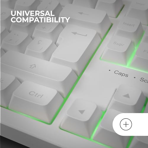 Mars Gaming MK023, Gaming Tastatur TKL, Hybrid H-Mech Technologie, FRGB Regenbogenbeleuchtung, Anti-Ghosting, Universelle Kompatibilität, Weiß, Spanische Sprache