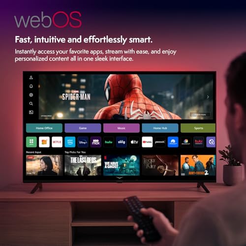Vibox 43-Zoll 4K QLED Smart TV | WebOS | 3X HDMI, 2X USB | Wandmontage kompatibel | Gestenfernbedienung mit Streaming-Steuerung