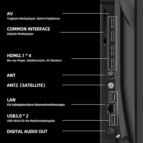 Smartes TV-System Das intuitive smarte TV-System bietet einfachen Zugang zu Netflix, YouTube, Disney+ und mehr. Genießen Sie nahtlose Konnektivität mit Bluetooth 5.1 und Dual-Band WLAN und steuern Sie alles mit dem integrierten Assistant per Sprachbefehl