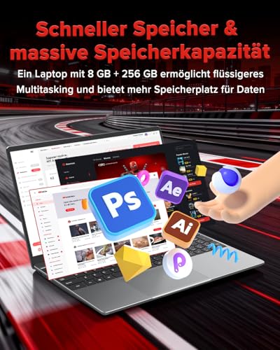 【8GB DDR4 RAM 256GB SSD】Mit 8GB RAM 2933MHz stromsparendem, hochfrequentem Speicher ist es einfach, mehrere Anwendungen reibungslos auszuführen, und das 256GB SSD-Hochgeschwindigkeits-Solid-State-Laufwerk ist 5 Mal schneller als herkömmliche Festplatten und gibt mehr Speicherplatz für eine bessere Handhabung Ihrer Daten und Dokumente frei