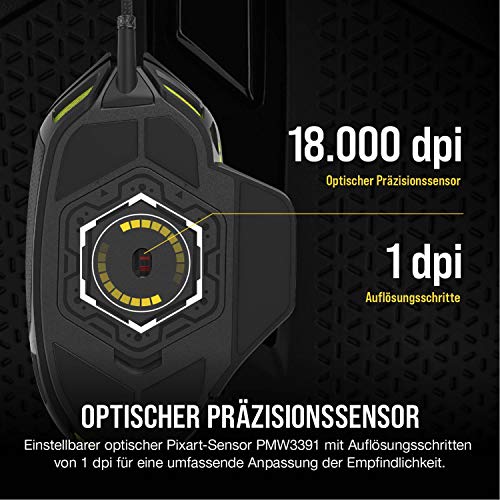 Der bisher modernste optische Sensor von CORSAIR: Die Auflösung des anpassbaren nativen optischen Sensors Pixart PMW3391 mit 18.000dpi lässt sich in Schritten von 1dpi einstellen