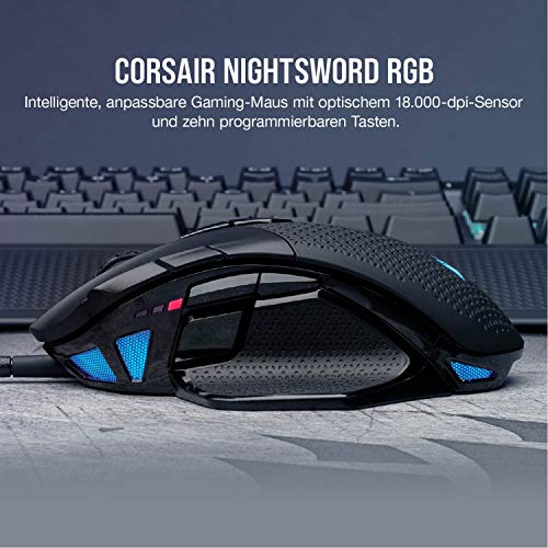 CORSAIR NIGHTSWORD RGB Kabelgebundene Tunable FPS/MOBA Gaming-Maus – 18.000 DPI – 10 Programmierbare Tasten – Gewichtssystem – iCUE-Kompatibel – PC, Mac, PS5, PS4, Xbox – Schwarz
