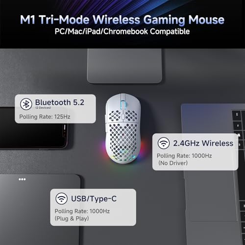 Systemkompatibilität: Die Dierya M1 kabellose Gaming-Maus unterstützt Windows / macOS / Linux / Chrome OS. Systemvoraussetzungen: USB-HID 1.1, Bluetooth 4.2 oder höher.