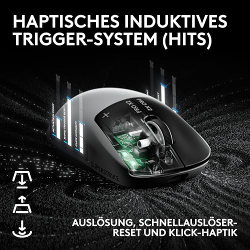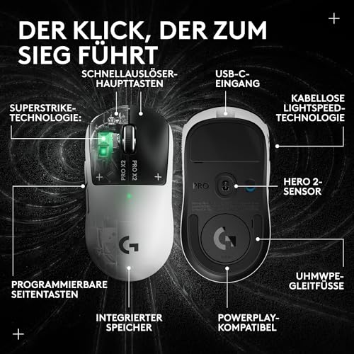 Logitech G PRO X2 SUPERSTRIKE Lightspeed kabellose Gaming-Maus, super schnell, äußerst leicht (61 g), anpassbare klick-Haptik, USB-C-Aufladung, für PC/Mac/Laptop – Weiß