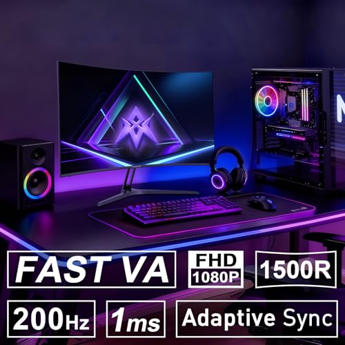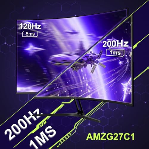 Amzfast 27 Zoll Curved Gaming Monitor – 200Hz, 1920×1080 FHD, Fast VA Panel, 1500R, 1ms GtG, sRGB 130%, 3000:1 Contrast, HDR, Adapive Sync, Blaulichtfilter, VESA 100 * 100, HDMI2.0&DP1.2 – AMZG27C1