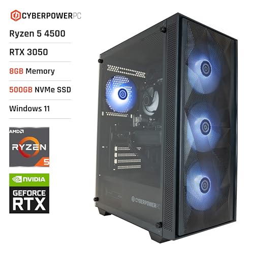 CYBERPOWERPC Regiment Gaming-PC – AMD Ryzen 5 4500, Nvidia RTX 3050 6GB, 8GB RAM, 500GB NVMe SSD, 450W PSU, Windows 11, Sylph RGB