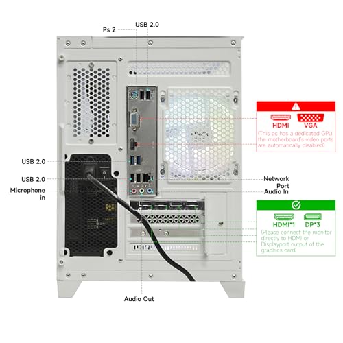 Atemberaubendes Panorama-Gehäuse: (Anmerkung: Der ursprüngliche Text enthielt hier einen Fehler, der eine Wiederholung war. Die Übersetzung folgt dem sinnvollen Teil.) Das ansprechende Weiß-Tower-Gehäuse bietet eine atemberaubende Panorama-Ansicht auf Ihre leistungsstarken internen Komponenten.