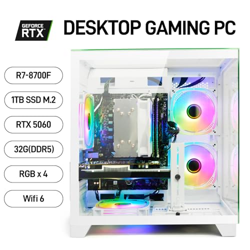 LXZ Gaming PC Desktop Ryzen 7 8700F | 32 GB DDR5 RAM | Ge Force RTX 5060 8 GB | Hochleistungs-Gaming- & Design-Computer, White Tower PC
