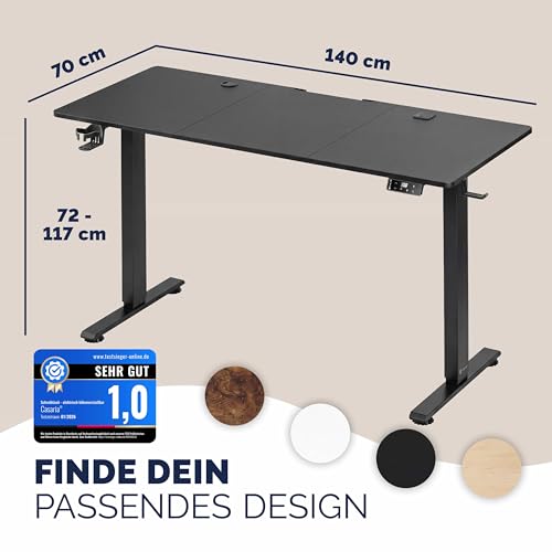 Casaria® Höhenverstellbarer Schreibtisch elektrisch 140 x 70 cm mit Wireless Charger & USB-C/A Anschluss LCD-Display Memory-Funktion 80 kg belastbar ergonomisch Schwarz