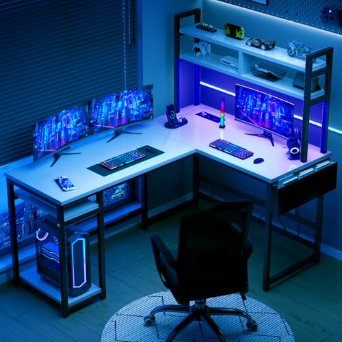 【Gaming tisch groß】Dieser gaming schreibtisch l form bietet Staufächer und Platz für Bücher, Topfpflanzen und andere kleine Gegenstände. Die Tischplatte ist geräumig genug für bis zu 3 Monitore und Laptops.