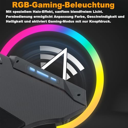 RGB-Beleuchtung für ultimatives Gaming-Feeling: Die integrierte RGB LED-Beleuchtung schafft eine eindrucksvolle Atmosphäre beim Spielen. Farbe, Helligkeit und Geschwindigkeit lassen sich bequem per Fernbedienung anpassen – für ein individuelles, immersives Gaming-Ambiente nach Ihrem Geschmack