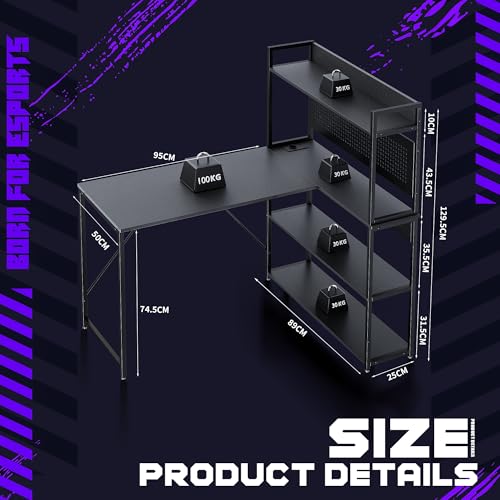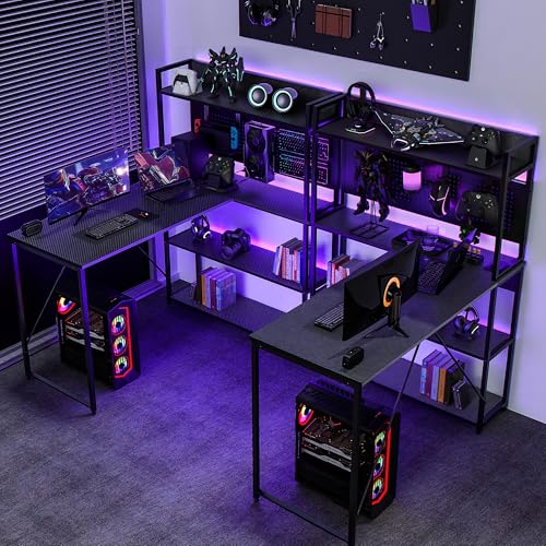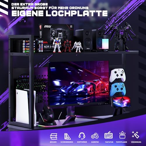 L-förmiger Gaming-Schreibtisch : Dieser L-förmige Gaming-Schreibtisch wird mit 2 Ablagefächern,1 Steckdosen und 1 Arten von Lichtleisten geliefert.Ein idealer Schreibtisch für kleine Räume, der einen großartigen Raum für Heimbüro oder Spiele schafft