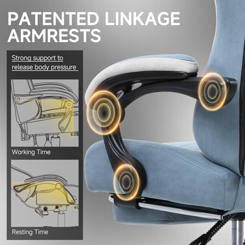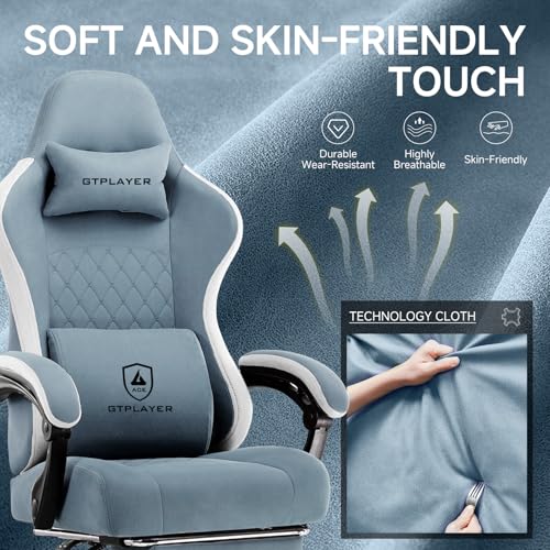 GTPLAYER Gaming Stuhl Ergonomischer Gaming Sessel Schreibtischstuhl mit Stoffoberfläche, Federsitzkissen, Verbindungsarmlehnen und Fußstütze Hellblau