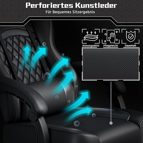 Reaktionsschneller Sitzkomfort: Der Sitz dieses PC-Stuhls enthält 24 unabhängige Taschenfedern, die sich Ihrer Körperhaltung anpassen und den Druck gleichmäßig verteilen. So genießen Sie auch bei langen Gaming- oder Arbeitsphasen dauerhaften Komfort