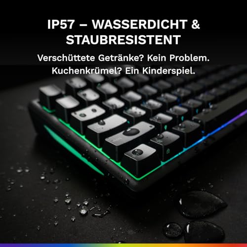 Wasserdicht und staubresistent (IP57): Lass dich nicht von verschütteten Getränken vom Sieg abhalten – die GMBK 75 % ist wasserdicht und staubgeschützt mit IP57-Zertifikat, sodass du auch bei kleinen Unfällen weiterspielen kannst.