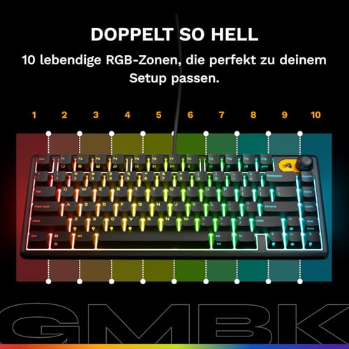 Optimiertes Gaming-Design: Die GMBK 75 % ist kleiner als TKL-Tastaturen und bietet mehr Platz für deine Maus, ohne auf wichtige Tasten zu verzichten. Alles, was du brauchst, ist jederzeit bequem erreichbar.