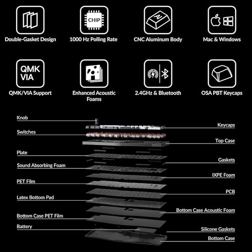 Hot-Swappable und stabile Tasten Dank der Hot-Swappable-Sockel können Sie die Schalter problemlos ohne Löten austauschen. Die schraubbaren PCB-Stabilisatoren sorgen für ein stabileres und flüssigeres Tippgefühl, besonders bei großen Tasten wie Leertaste, Shift und Enter.