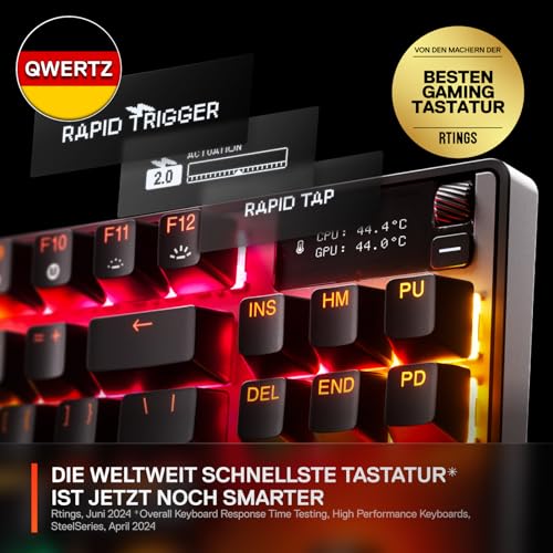 SteelSeries Apex Pro TKL Gen 3 – Gaming Keyboard – Hall Effect Switches; OmniPoint 3.0 – Adjustable Actuation – Game-Ready Presets – Rapid Trigger, Protection Mode, Rapid Tap/SOCD – German QWERTZ
