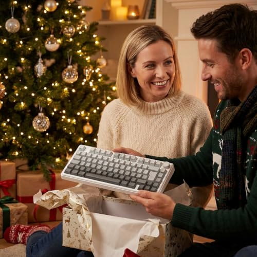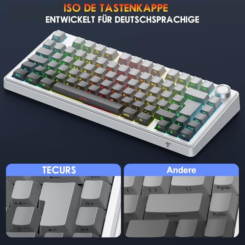 TECURS Gaming Tastatur Mechanische | 75% Hot-Swap Sideprinte Tastatur Kabellos Rote Achse Gasket Mount, PBT, RGB, Creamy MK209 Keyboard (2.4G/BT/Type C) – Für Gamer Setup