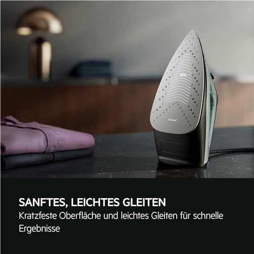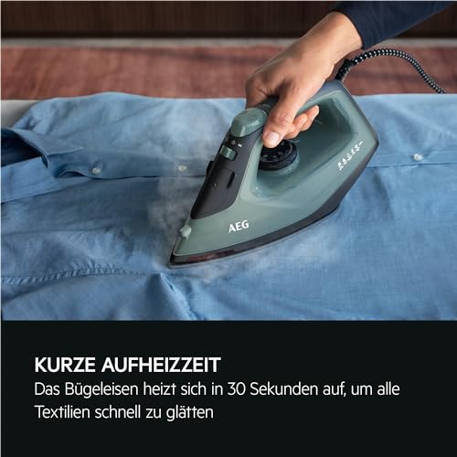 AEG Dampfbügeleisen, 2400 W, Variabler Vertikaldampfstoß, Feinspray, 24% Recyclingkunststoff, Restwärmeanzeige, 2 m Kabel, 180° Drehbar, Anti-Kalksystem, Keramikbügelsohle, Grüngrau, SI5-2-6OG