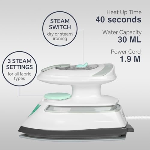 Mit perfekter Größe und Gewicht ist dieses Dampfbügeleisen gut geeignet für kleine Bügelarbeiten beim Nähen und Plotten, Puppenkleidung oder Babysachen