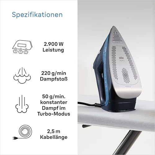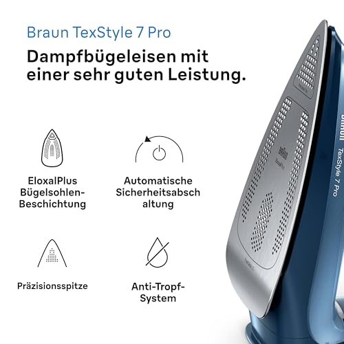 Braun TexStyle 7 Pro Dampfbügeleisen SI 7160 BL – Bügeleisen mit Freeglide 3D Bügelsohle, Vertikaldampf, 3000 Watt, Blau