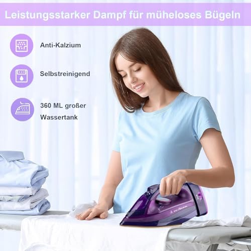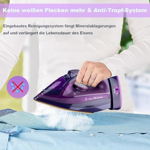 👋【Anti-tropf Und Anti-kalk Bügeleisen Dampf Kabellos】Die Anti-Tropf-Funktion verhindert Flecken auf der Kleidung, während die Anti-Kalk-Technologie vor Kalkablagerungen schützt und dank der Selbstreinigungsfunktion jegliche Ablagerungen beseitigt.