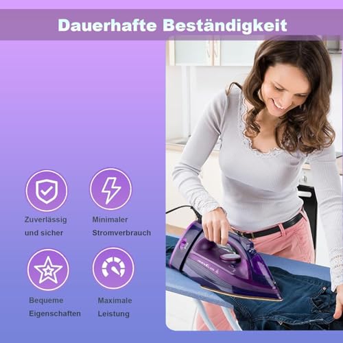 👚【Keramisch beschichtete Soleplate】Dieses 2400W Dampfbügeleisen für Kleidung bietet hervorragende Faltenbildung auch von den hartnäckigsten Stoffen. Die keramikbeschichtete Sohle kann schnell und gleichmäßig erhitzen und leicht über verschiedene Kleidungsstücke gleiten und schwer zugängliche Stellen glätten. Super kratzfest, langlebiger und einfacher zu reinigen.