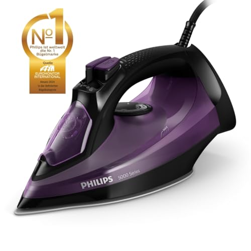 Philips 5000 Series Dampfbügeleisen – 2.400 W, Dampfstoß bis zu 180 g, SteamGlide Plus-Bügelsohle, Tropf-Stopp-System, Vertikaldampf, Effizientes Bügeln, Automatische Kalkreinigung (DST5030/80)