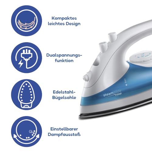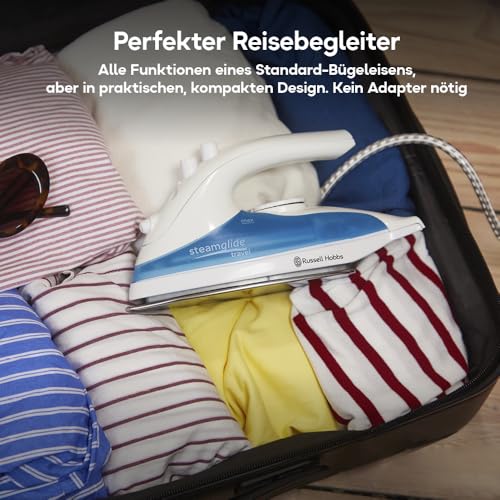 Russell Hobbs Dampfbügeleisen Reise (Leicht, kompaktes Reisebügeleisen mit Dampf, weltweite Spannungsanpassung 110-240V) Bügeleisen (Edelstahlsohle,Temperaturregler,Trocken und Sprühfunktion) 22470-56